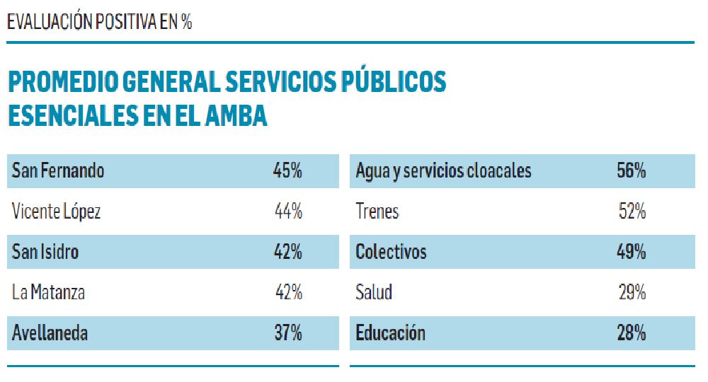 Una encuesta revela la inequidad latente entre los diversos municipios del Área Metropolitana de Buenos Aires. Mientras la mayoría de los vecinos aprueba la red de colectivos y trenes, la atención en hospitales y escuelas se muestra en baja.