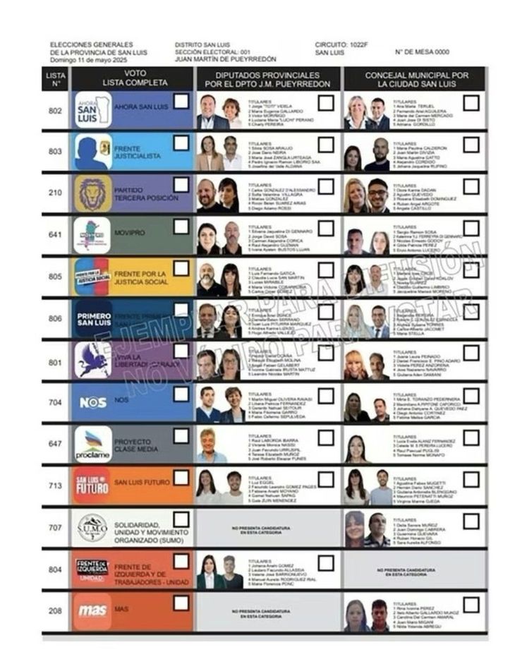 "Si alguien marca más de un casillero o comete un error, puede salir del biombo, devolver la boleta y recibir otra para repetir el voto", aclaró y puso de relieve que "cada opción incluye colores, símbolos y fotos de los primeros candidatos; por ejemplo, la boleta de Fuerza Patria es la número 7".
