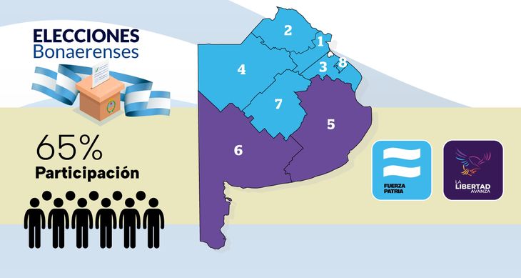 Fuerza Patria se impuso en seis de las ocho secciones electorales bonaerenses. En ese esquema, La Libertad Avanza solo exhibió triunfos en 28 localidades. Fuerte despliegue de los alcaldes.