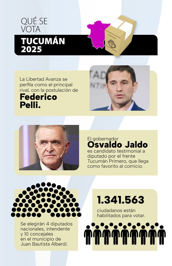 Con esta unidad, el Frente Tucumán Primero buscará revertir los resultados del balotaje presidencial de noviembre de 2023, cuando el presidente Javier Milei se impuso con un 52,07% contra un 47,92% de votos de Massa. Esta provincia es el sexto distrito electoral más importante del país, con un padrón de 1.341.563 electores y un peso nacional del 4%, el sexto lugar del padrón nacional. En esta provincia se renovarán cuatro bancas que corresponden a los peronistas Agustín Fernández y Elia Fernández (Bloque Independencia, que responden a Jaldo), al radical Roberto Sánchez y a Paula Omodeo (CREO, alineada con LLA). "Vamos por las tres bancas, no es imposible", sostuvo Jaldo en uno de los últimos actos de campaña.