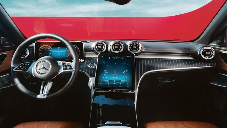 El diseño de los asientos del nuevo Clase C utiliza capas y superficies envolventes. El Paquete AMG-Line interior incluye: asientos delanteros deportivos con ajuste eléctrico y función de memorias, volante deportivo multifunción forrado en napa, tablero, pantalla y líneas de cintura en símil cuero, iluminación ambiente en 64 colores. Al asistente de mando fónico del MBUX se le suma la personalización de perfiles y funciones predictivas.