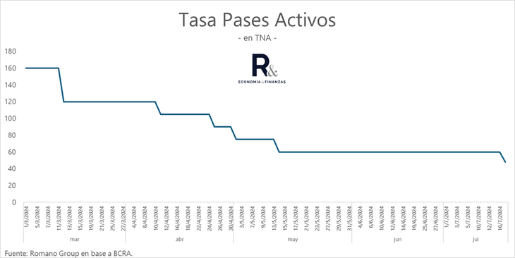Se trata de la tasa de los pases activos, que desde este jueves se redujo del 60% al 48% nominal anual. Además, el BCRA volverá a ofrecer pases activos a siete días de duración. Hasta ahora, más allá de que no tenían demanda desde hace tiempo, solo ofrecía pases activos a un día.