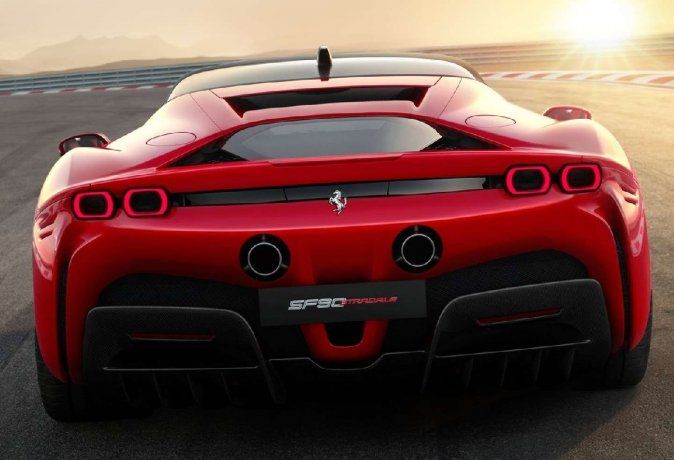 La SF90 Stradale mide 4,7 metros de largo, 1,97 m de ancho y 1,86 m de alto. La distancia entre ejes es de 2,65 metros. Sus líneas intimidan, por ejemplo con cuatro salidas de escape y un difusor posterior que, junto a otros elementos de aerodinámica activa, logra ofrecer 390 kilos de carga aerodinámica a 250 km/h.