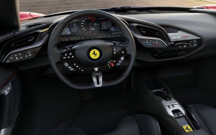 El motor naftero es un V8 4.0 biturbo de 780 CV y 800 Nm de torque máximo. A este se suman tres motores eléctricos que en su conjunto entregan 220 CV, lo que da un total declarado por Ferrari de 1000 caballos de fuerza. La caja es automática de 8 marchas y la tracción a las cuatro ruedas (salvo cuando va en modo 100% eléctrico, que es delantera).