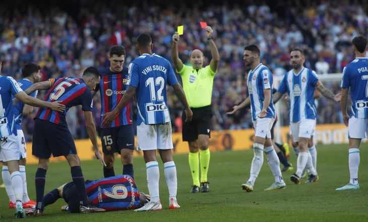 Los ánimos estallaron tras el empate, con Jordi Alba expulsado a los 80 minutos tras recibir tarjetas amarillas consecutivas por sus protestas contra el árbitro. Y Vinícius Souza, del Espanyol, vio la segunda tarjeta amarilla por una falta sobre Robert Lewandowski dos minutos después.