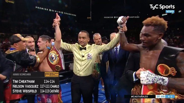 Castaño fue dominador del combate hasta el décimo round, momento en el que una contra del estadounidense puso en malas condiciones al argentino y abrió paso para que la decisión de los juradas no premiara la mejor tarea del argentino.