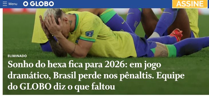 Los medios brasileños lamentaron esta tarde la eliminación de su seleccionado en los cuartos de final del Mundial Qatar 2022, luego de perder por penales por 4 a 2 ante Croacia (en el alargue empataron 1 a 1), en el estadio Education City de Doha.