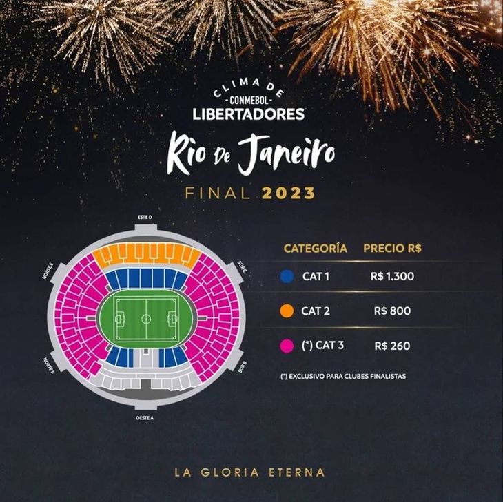 La Categoría 3 es el sector dedicado a los clubes finalistas y no estará disponible para la venta al público general y/o local.