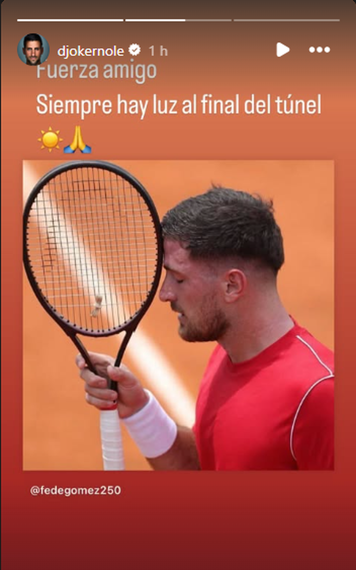 El mensaje de Djokovic llega en un momento difícil para Gómez, quien recientemente fue eliminado en la fase clasificatoria del Masters 1000 de Indian Wells tras caer por 6-4 y 7-5 ante el estadounidense Rudy Quan (714°).