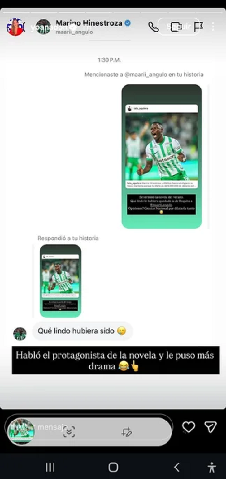 Debido a esto, la periodista Yoana Don compartió en redes una conversación con el atacante colombiano de 23 años acerca del frustrado pase al conjunto boquense.