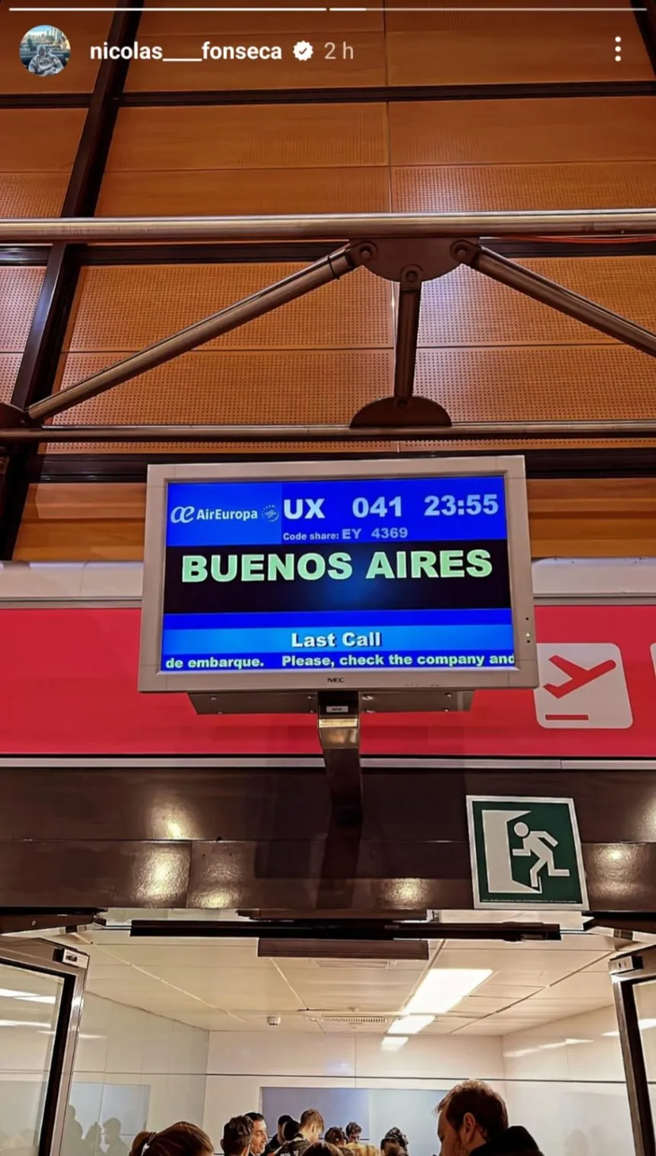 Fonseca, de 25 años, arribó proveniente de Italia, según lo publicado en su historia de la red social Instagram, que subió pocas horas antes de embarcarse.