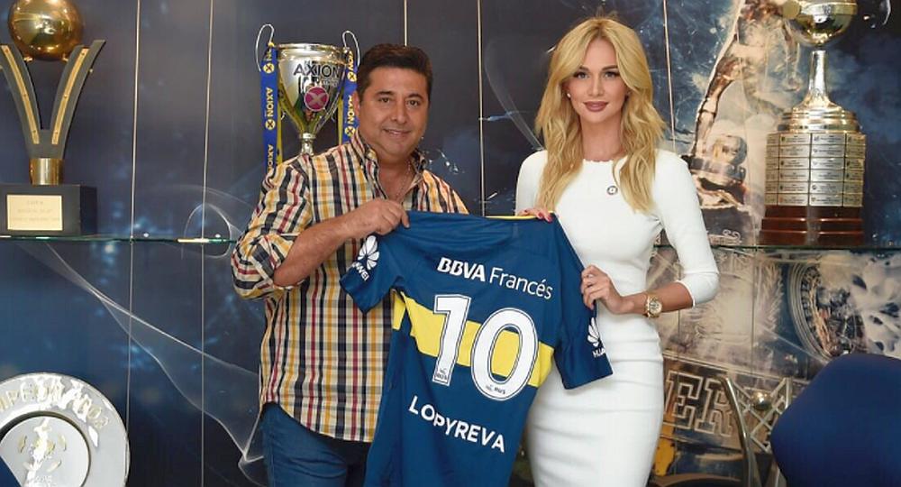 Vika Lopyreva vio el triunfo de Boca en el palco presidencial de La Bombonera, junto a Jorge Sampaoli, Sebastián Beccacece y Daniel Angelici.