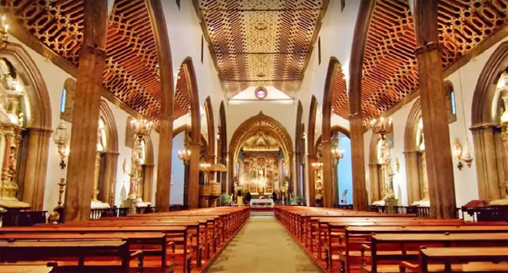Su arquitectura, mezcla de influencias manuelinas y góticas tardías, conserva un aura solemne que convierte cada rincón en un viaje a otra época. Pero si hay un elemento que cautiva a quienes la visitan, ese es su techo de madera de cedro de Madeira, tallado artesanalmente y considerado una de las joyas patrimoniales más valiosas de la región.