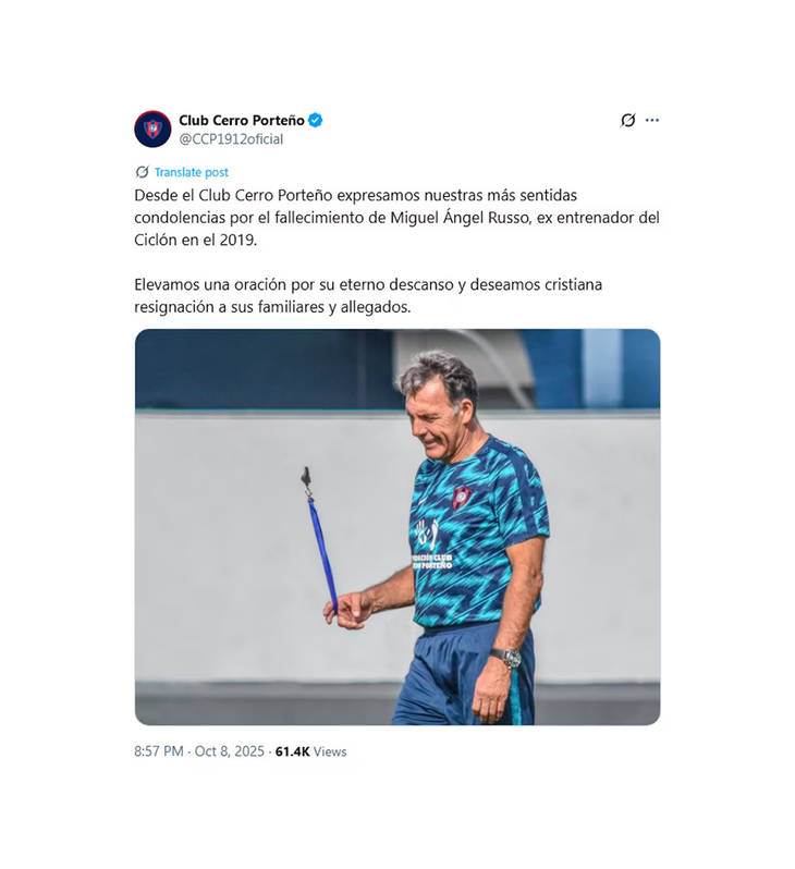 La noticia de la muerte de Miguel Ángel Russo no sólo generó conmoción en Boca Juniors sino también en todo el mundo del fútbol. Tras 50 años de trayectoria como jugador y entrenador, marcó la historia del deporte nacional y fue despedido en redes sociales por decenas de referentes de distintos ámbitos.