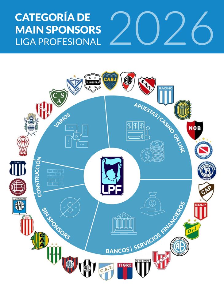 En la actualidad, el mapa de sponsoreo de la Liga Profesional de la AFA refleja una variación estructural en el financiamiento de los clubes con el ingreso creciente del sistema financiero y del juego online.