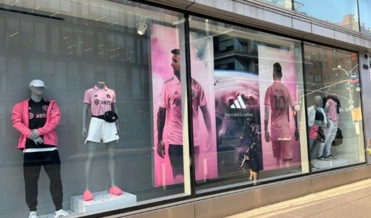 A falta de varios días para la presentación oficial como jugador de Inter Miami, uno de los locales insignia de Adidas en Nueva York ya luce cartelería con el rosarino enfundado en los colores de su nuevo equipo.