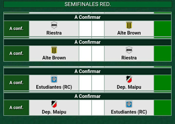 Almirante Brown, Deportivo Maipú, Deportivo Riestra y Estudiantes de Rio Cuarto, los cuatro semifinalistas.