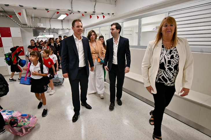 El Presidente Jorge Brito, el Secretario General Stefano Di Carlo y los chicos de primer grado cortaron la simbólica cinta del nuevo edificio que albergará a 1000 estudiantes y dieron comienzo al ciclo lectivo 2025, en compañía de las familias, autoridades del Área Educativa (presidida por Manuel Vidal) y miembros de la Comisión Directiva.