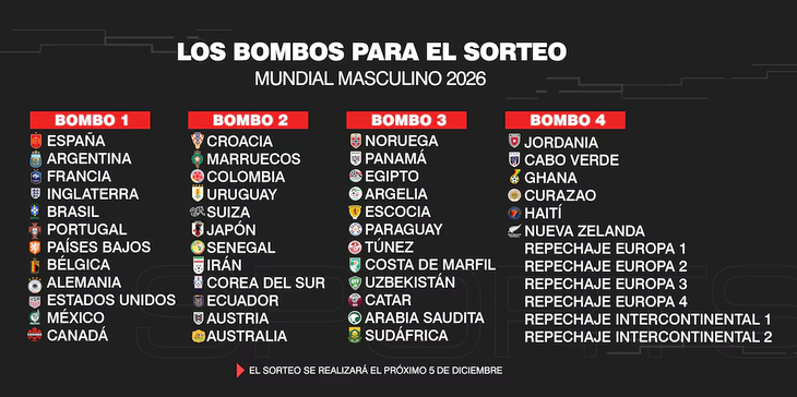 Sorteo del Mundial 2026: fecha, hora, bombos y los clasificados