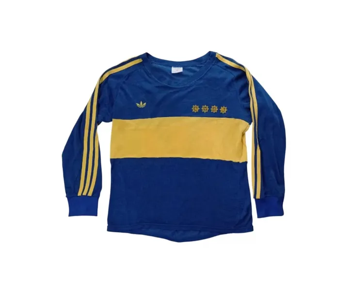 Según la descripción oficial, la prenda pertenece a la etapa inicial de Maradona en Boca Juniors, club al que llegó en 1981 y con el que se consagró campeón del Metropolitano. Se trata de una camiseta Adidas original, confeccionada en Argentina, de manga larga, color azul con franja amarilla central, triple tira en los hombros y número 10 aplicado en fieltro en la espalda.