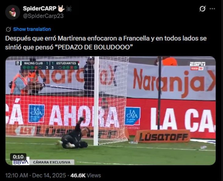 En varias de las publicaciones más compartidas, los internautas hicieron referencia al gol de Adrián “Maravilla” Martínez para Racing y lo compararon con anotaciones históricas del fútbol argentino, aportando un tono nostálgico y divertido al contexto del encuentro. Otros memes ironizaron con el bajo nivel del primer tiempo y destacaron el cabezazo de Guido Carrillo que llevó el partido al tiempo extra y, posteriormente, a la definición por penales.