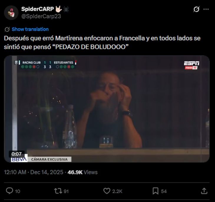Las imágenes más virales también reflejaron momentos clave de la definición desde los 12 pasos, como las atajadas de los arqueros y la ejecución fallida de algunos jugadores, que rápidamente se convirtieron en materia prima para bromas, cargadas y ediciones creativas. Además, no faltaron los memes protagonizados por figuras emblemáticas que vivieron el partido desde la tribuna, como Juan Sebastián Verón celebrando junto a los hinchas, o la desazón de seguidores de Racing en los palcos.