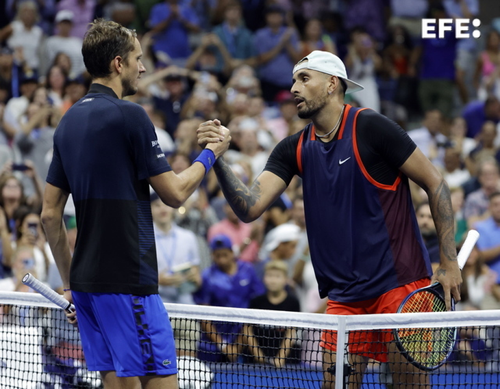 Kyrgios, de 27 años, que alcanzó por primera vez los cuartos de final en Nueva York, estiró su ventaja en el historial con el ruso, ahora 4-1, tras exhibir un destacado nivel que le permitió conectar 21 aces y 53 golpes ganadores.