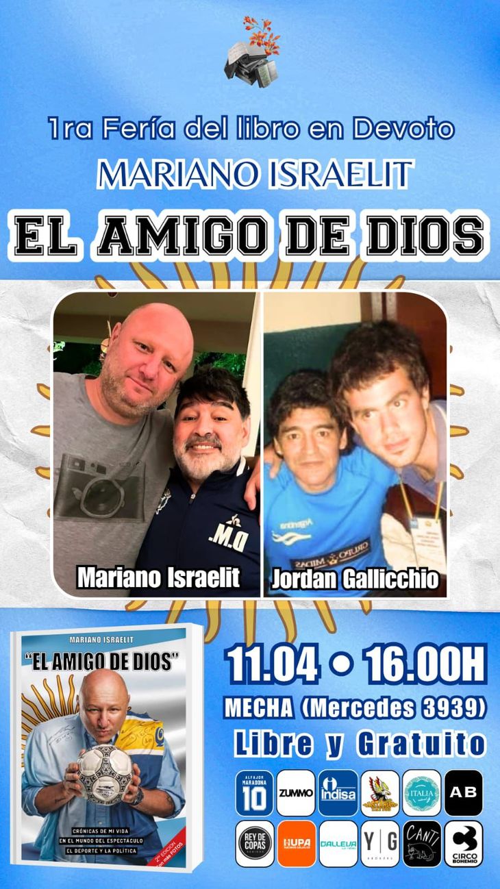 El barrio porteño de Villa Devoto tendrá su primera Feria del Libro (FLiD) y uno de sus principales atractivos será la presentación de “El amigo de Dios”, el libro de Mariano Israelit que reúne anécdotas inéditas sobre la vida de Diego Maradona. El evento reunirá a más de 50 autores y autoras, editoriales independientes y propuestas artísticas en una jornada abierta al público y pensada para toda la familia.