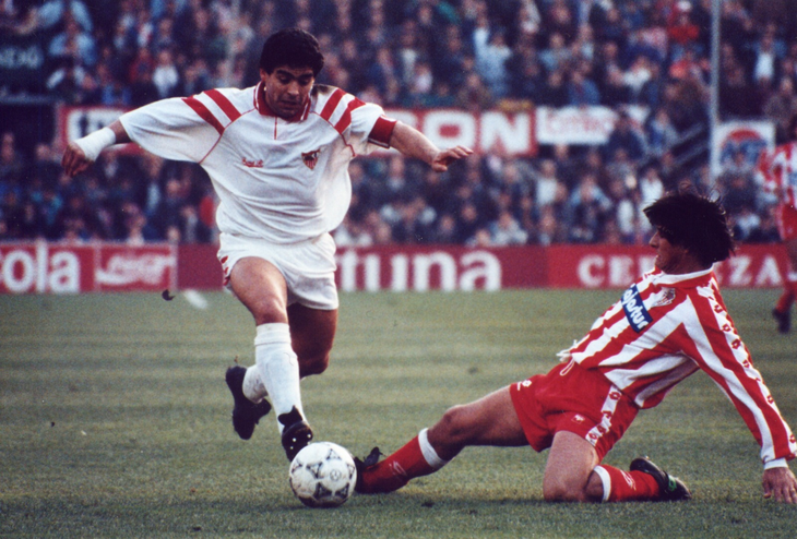 Maradona, por entonces de 32 años, jugó 29 partidos y marcó seis goles en el Sevilla, donde formó una afilada dupla de ataque con el goleador croata Davor Suker.