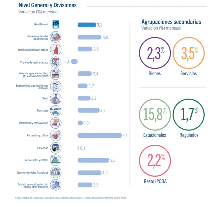 De acuerdo con el Índice de Precios al Consumidor de la Ciudad de Buenos Aires (IPCBA), al inflación fue del 3,1% en enero, por encima del 2,7% registrado en diciembre.