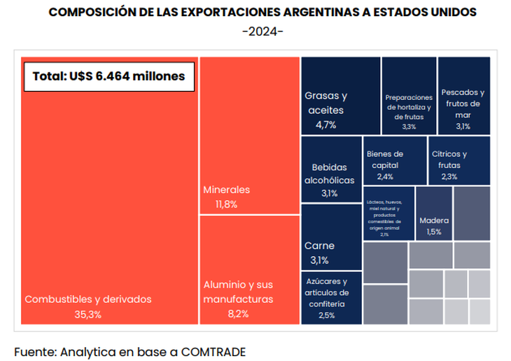 Desde entonces, los productos que Argentina vende al norte enfrentan un recargo mínimo del 10%, a lo cual se suman aranceles específicos, destacándose el gravamen del 50% para el aluminio y el acero. Es precisamente en la producción de aluminio donde la consultora Analytica ve una de las mayores oportunidades en torno al eventual acuerdo comercial.