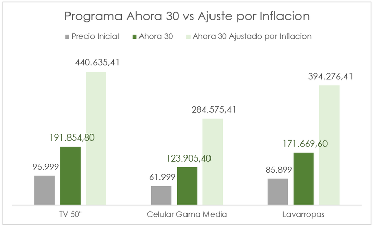 Esta "vuelta carnero" , nos muestra que no solo obtendremos un producto en términos reales negativo ajustado por inflación futura, sino que además financiarlo con Ahora 30 nos permite obtenerlo “prácticamente gratis” si se aprovechan correctamente esta distorsión de mercado.