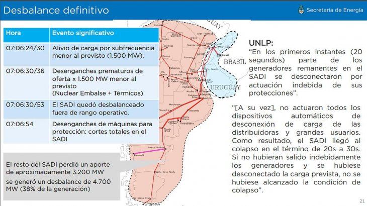 Lopetegui explicó que tendría que haber funcionado instantáneamente la Desconexión Automática de Generación (DAG), porque al producirse el cortocircuito salió del sistema toda la demanda que venía el sur, dado que la línea ya no estaba transmitiendo.