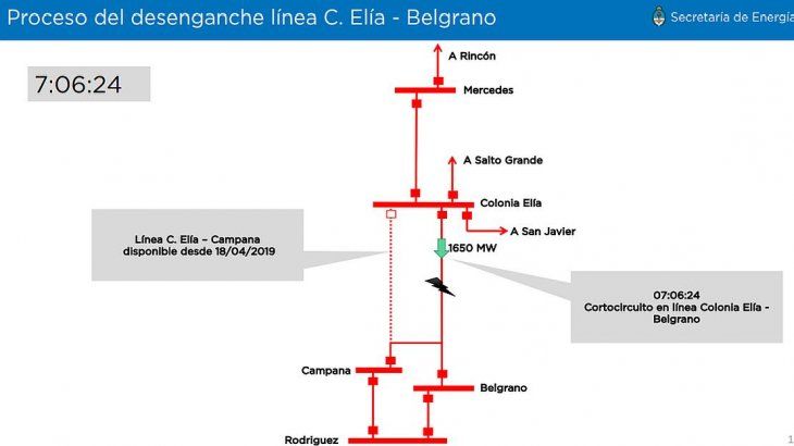 Tras afirmaciones de ex secretarios de Energía que opinaron después de la falla masiva, el funcionario dijo que "es falso que la línea de Colonia Elía-Belgrano haya estado sobrecargada, dado que nunca operó por sobre sus parámetros de seguridad. Se estaba un 18% por debajo de la capacidad máxima de la línea".