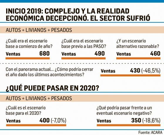 Lo más preocupante es que se estima como escenario positivo para el 2020 llegar a los 400.000 vehículos pero podría ser peor, en base a lo que establece el estudio, ya que el piso podría bajar a 350.000 0 km.
