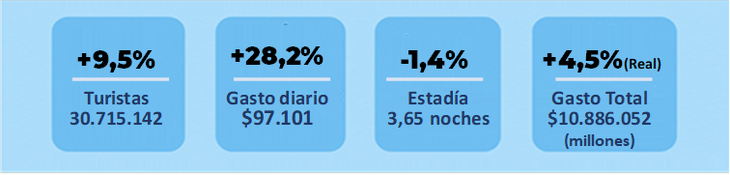 La entidad informa que la temporada finalizó con 30,7 millones de turistas recorriendo el país con un impacto económico cercano a los $11 billones.