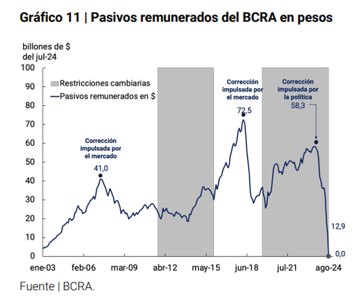 El objetivo de la medida fue eliminar los pasivos remunerados del Central para terminar con la emisión monetaria asociada al pago de intereses de estos instrumentos, a costa de transferirle al Tesoro la carga del pago de esos intereses, que ahora pasarán a ser afrontados con un ajuste fiscal adicional sobre otras partidas.