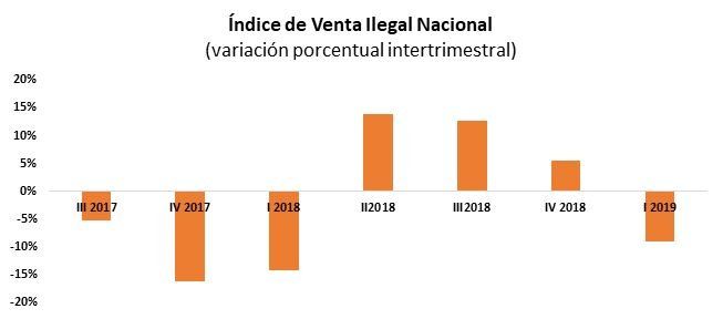 En el mismo se desprende que durante el primer trimestre de 2019, la venta ilegal callejera a nivel nacional bajó 9% en relación al último trimestre de 2018.
