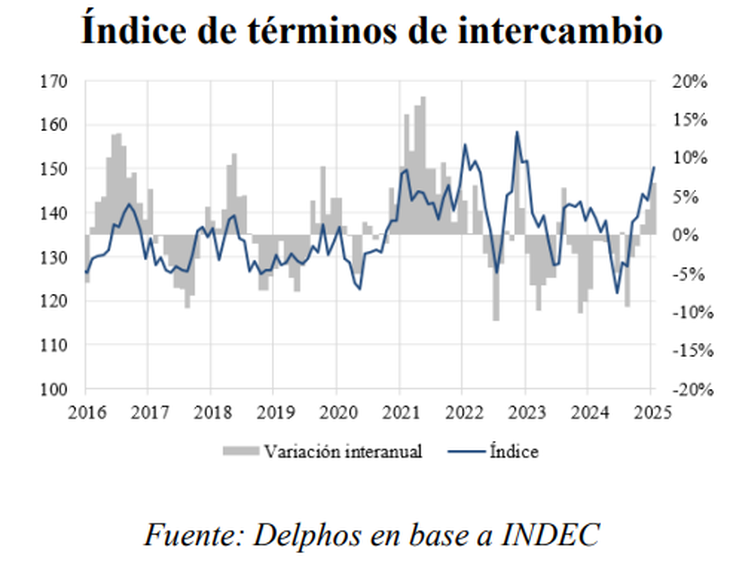 Para 2025, la consultora destacó que "la mejora en los términos de intercambio ya generó una ganancia de u$s405 millones" en enero, lo cual despierta cierto optimismo en esta materia.