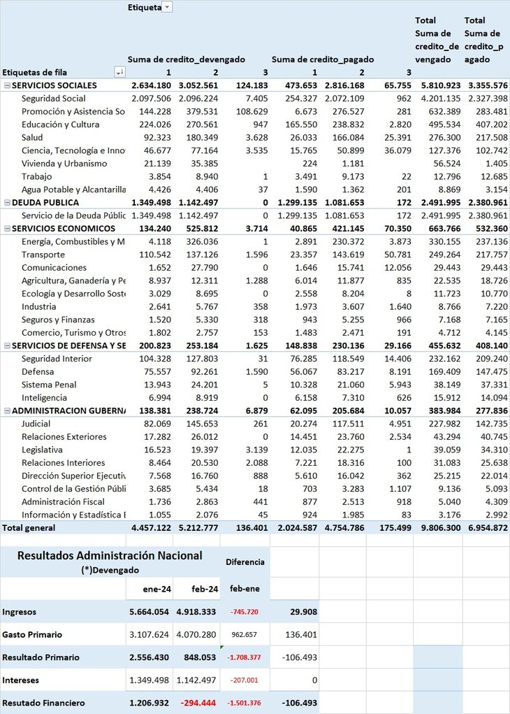 Comparado con enero, y en base a Presupuesto Abierto, los ingresos cayeron unos $745.000 millones, el gasto primario subió unos $962.000 millones, el resultado primario se deterioró en $1,7 billones, se pagaron menos intereses por $207.000 millones y el resultado financiero se deterioró en $1,5 billones.