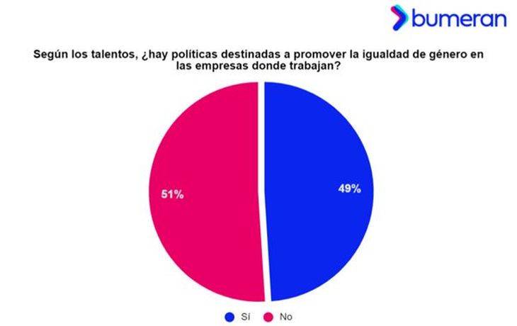 Respecto a las políticas destinadas a promover la igualdad de género, el 51% de los talentos expresa que en las organizaciones donde trabajan no se implementan ningún tipo de medidas orientadas a fomentar la equidad de género, frente a un 49% que expresa lo contrario. En la región, la tendencia es mayor: en Perú el 71% afirma la existencia de políticas; el 63% en Ecuador; el 53% en Chile; y el 52% en Panamá.