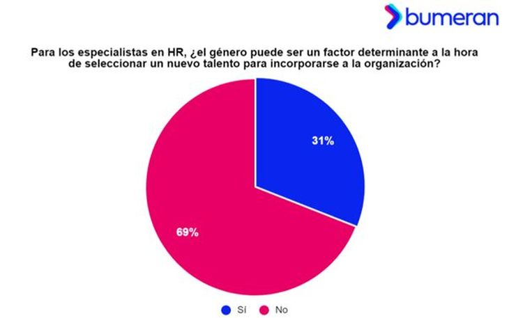 A la hora de seleccionar un nuevo talento para sus organizaciones, el 31% de los especialistas en HR considera que el género es un factor determinante. No obstante, la mayoría de ellos, el 69%, no lo considera así.