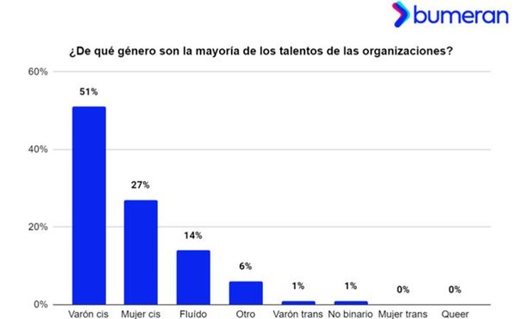 El 51% de los especialistas en Recursos Humanos afirma que la mayoría de los talentos de sus organizaciones son varones cis; otro 27% asegura que son mujeres cis.