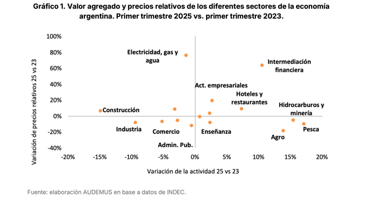 De acuerdo al informe de la consultora Audemus, el problema está en que entre estos últimos, se encuentran las actividades que más trabajo generan. Representan más del 52% del empleo formal. Tanto por el nivel de la actividad, como por los precios relativos, los principales perdedores son la industria y el comercio, mientras que entre los ganadores se anotan la intermediación financiera y la energía.
