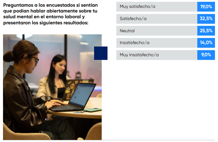 Al respecto, se preguntaron qué se puede hacer para mejorar esto y contestaron: "fortalecer la cultura de apertura: crear espacios seguros para conversaciones sobre salud mental, capacitación en liderazgo empático, comunicación clara y medición continua".