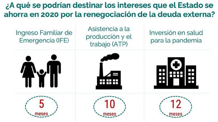 Un informe de la Universidad Nacional de Avellaneda (Undav) reveló que los u$s34.500 millones de quita de deuda que generó el Gobierno nacional en la renegociación con los acreedores podrían cubrir el pago de todos los IFE durante 5 meses, de 10 meses de pagos del ATP o un año completo de inversión en salud para la lucha contra la pandemia de Covid-19.