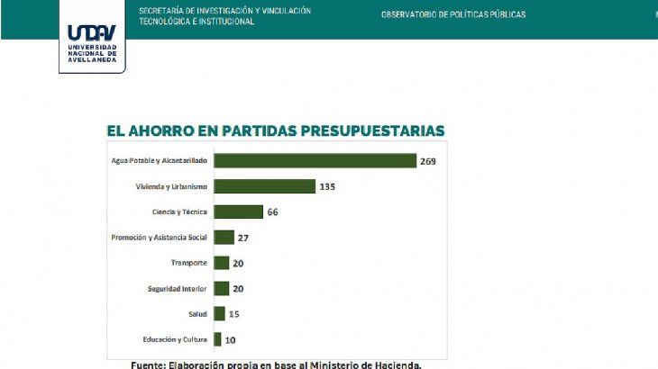 Pero además, lo que se ahorró el Estado nacional (u$s34.524 millones) representa 10 partidas presupuestarias del 2020 en Educación y Cultura; unas 15 de Salud; 20 de Seguridad Interior; 20 de Transporte; 27 de Promoción y Asistencia Social; 66 de Ciencia y Técnica; 135 de Vivienda y Urbanismo; 269 de Agua Potable y Alcantarillado.