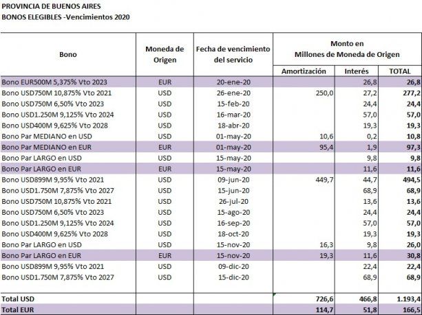 Para tomar una dimensión de la problemática de la deuda, advierten, si la provincia no reestructura su deuda, en 2020 tendrá que afrontar vencimientos por $220 mil millones, lo que equivale a 6 meses de recaudación tributaria propia o 4 meses de pago de todos los salarios de la provincia.