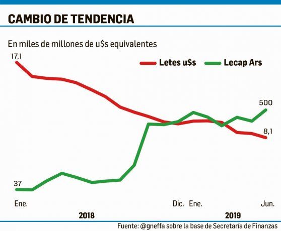 El Gobierno viene, desde el año pasado, desarrollando un proceso de reducción del stock de títulos de corto plazo en dólares y de ampliación de la proporción en pesos, con el fin de mitigar los riesgos de default y al mismo tiempo desarrollar un mercado de deuda en moneda local que funcione como referencia para la plaza doméstica.