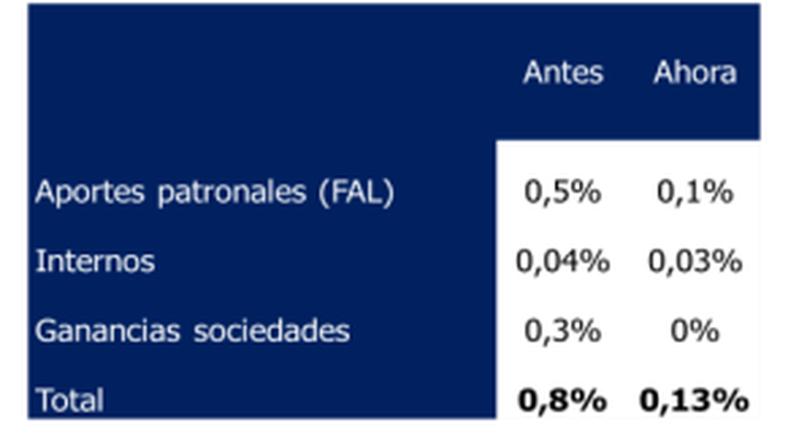 En cuanto al FAL, el esquema original contemplaba su financiamiento con la sustitución de tres puntos porcentuales de los aportes patronales y se utilización para el pago de indemnizaciones al momento del despido (dejando de realizar aportes al cabo de una cierta cantidad de meses sin despidos, lo que implicaba un ahorro directo para el empleador). En la versión actual, ese aporte se redujo a 1 punto porcentual (p.p) para empresas grandes y a 2,5 pp para el resto.